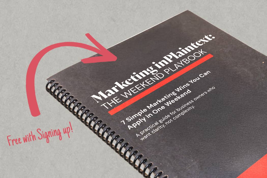 Unlock Marketing inPlaintext: The Weekend Playbook, a simple, practical guide to fixing your website, improving your messaging, boosting conversions, and strengthening your marketing in just a few hours.